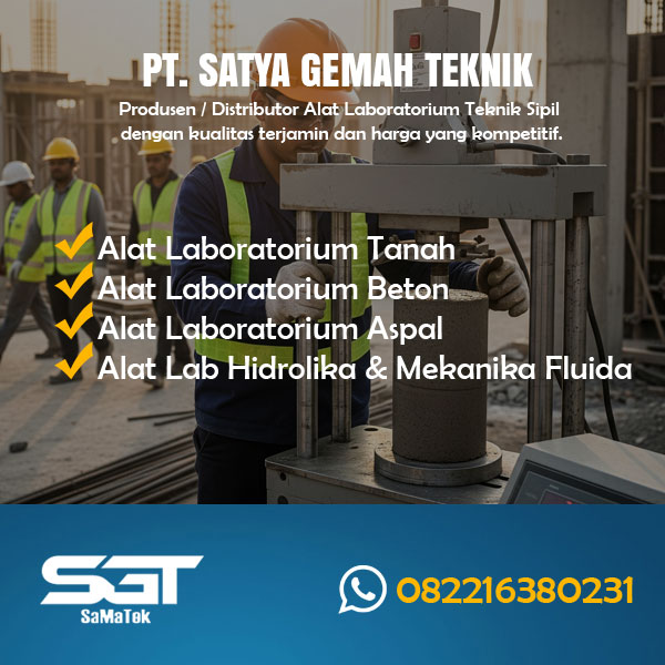 PT. SATYA GEMAH TEKNIK (SaMaTek) merupakan Produsen – Distributor alat laboratorium teknik sipil kantara lain Alat Uji Beton, Alat Uji Alpal, Alat Uji Tanah dan Alat Hidrolika dengan kualitas terjamin dan harga yang kompetitif. Produk kami bervariasi, untuk setiap jenis pengujian di bedakan dengan beberapa metode pengujian, antara lain pengujian yang dilakukan di laboratorium dan pengujian yang di lakukan di lapangan.